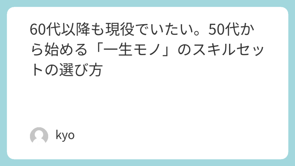 60代以降も現役でいたい。50代から始める「一生モノ」のスキルセットの選び方